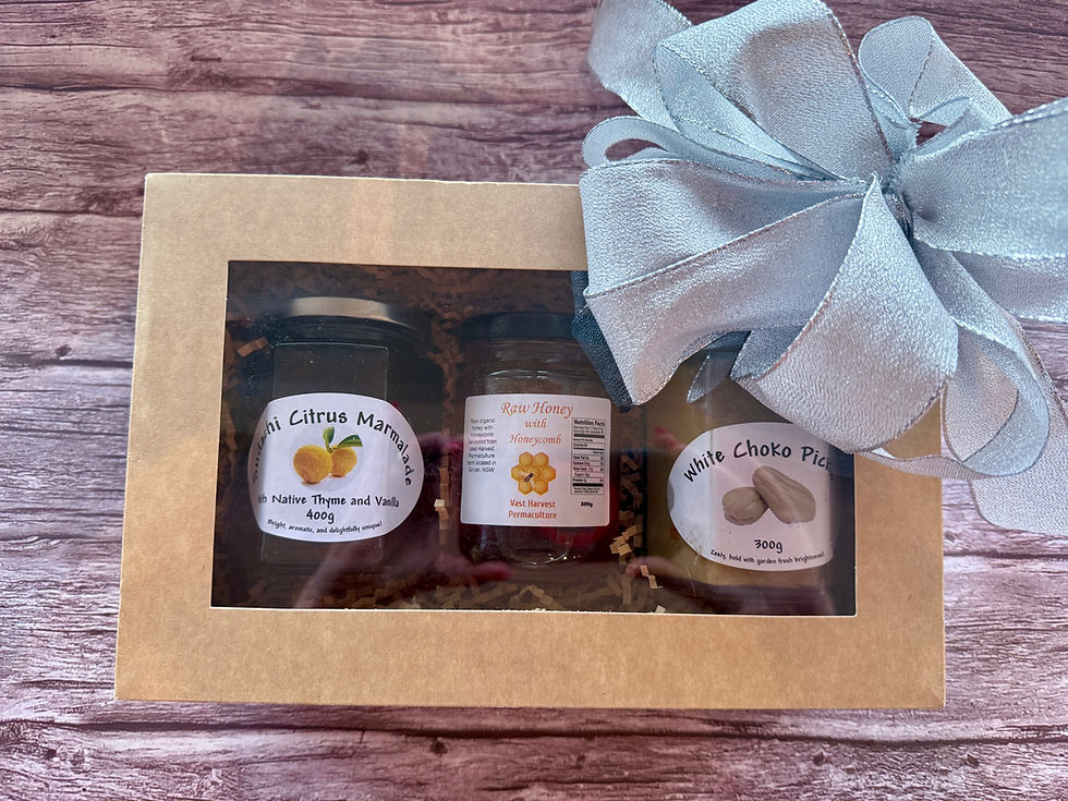 Our gift packs offer a curated selection of our finest handmade products, from flavourful condiments to nourishing herbal blends. Thoughtfully crafted with sustainability in mind, they make the perfect gift for food